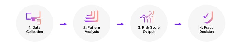2. Pattern analysis: Machine learning models review this data to find unusual patterns. Is the user logging in from a new country? Did their SIM just change? Are they using a high-risk email domain? These signals all help estimate the likelihood of fraud.
